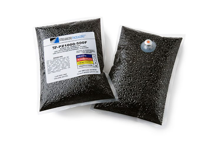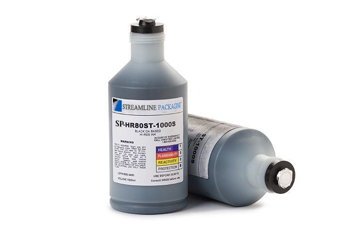 Streamline Packaging manufactures quality replacement inks for the most common hi-res systems in the marketplace. We also package these inks in 100% compatible containers, eliminating adaptors, fittings, or add-on units. These products include 500ml bottles for Videojet®, 500ml bags for Imaje®, 1-liter cartridge for Domino® and the 500ml ScanTrue II bottles for the Trident print engine. No flushing is needed with Streamline Packaging – simply replace the ink container and continue printing.