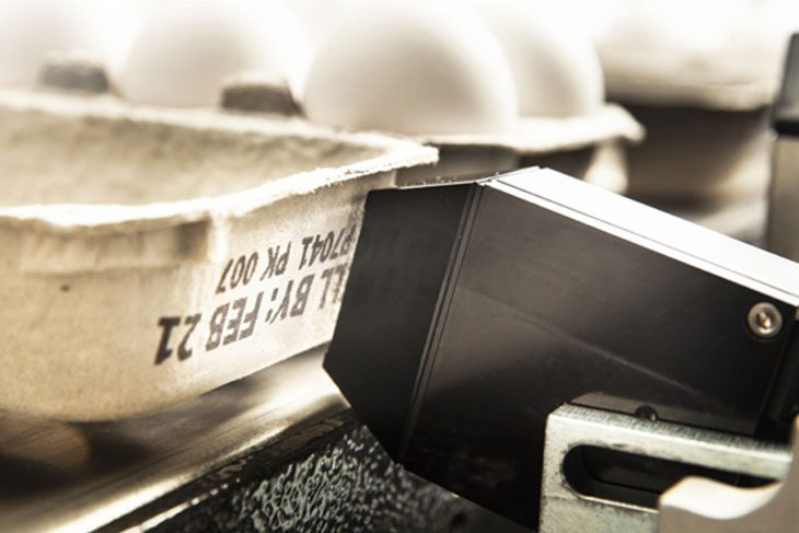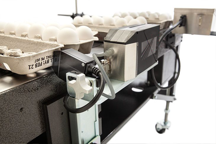 Pilot Flex is engineered for simple integration on your existing egg packing line or wherever space constraints are an issue. The system’s unique and compact design allows for narrow mounting in nearly every zone of your egg packing process, eliminating the need for after-market engineering or time-consuming modifications to your existing conveyor. Pilot Flex’s small printhead adjusts to match the slope of the carton to ensure a quality hi-resolution print. The system is capable of inverting your printed message, if needed, meaning you can print your cartons in the open or closed carton zone. At print speeds of up to 135 ft/minute, the Pilot Flex is sure to keep your production moving.