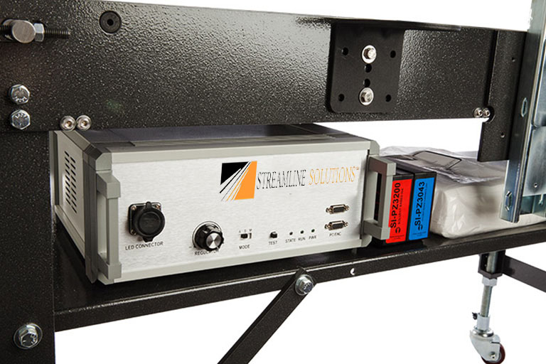 Streamline Packaging’s conveyor design is perfect for integration with ink jet printing equipment. Each conveyor comes pre-drilled in multiple locations to easily add printer and encoder mounting brackets. The smooth drive belt provides consistent speed for reliable, scannable barcoding and product transfer. Systems include a lower shelf with holes for cable management and provide storage for supplies such as spare printheads, printer and UV LED control boxes, spare ink, and more.